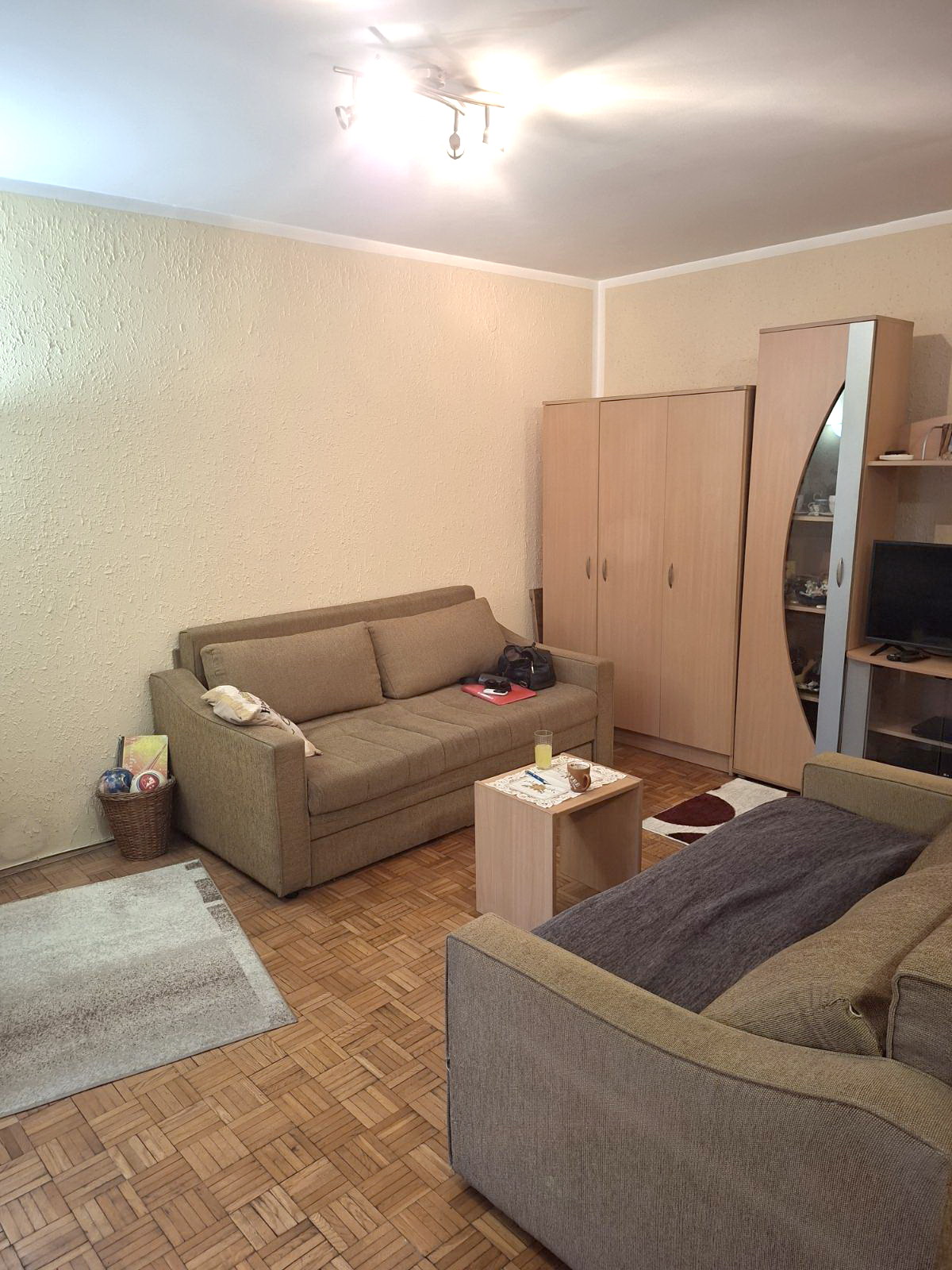 Lep komforan, dvosoban stan u zgradi od fasadne cigle na drugom spratu sa liftom i centralnim grejanjem.Stan se sastoji od velike dnevne sobe sa trpezarijom koja izlazi na prostranu terasu sa lepim,otvorenim pogledom,odvojene kuhinje sa ostavom, spavaće sobe i pripadajućeg balkona,lepog ulaznog predsoblja,prostranog kupatila.