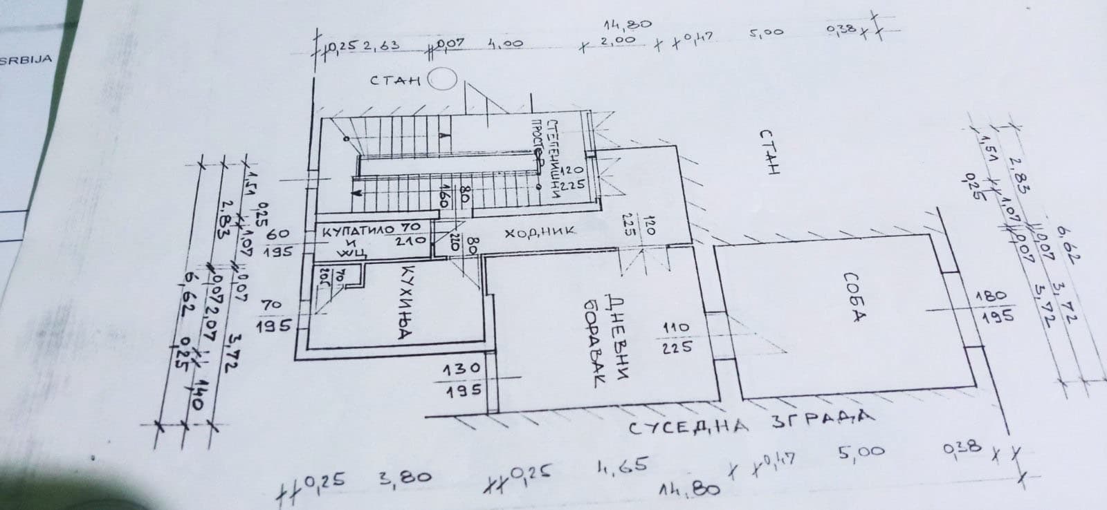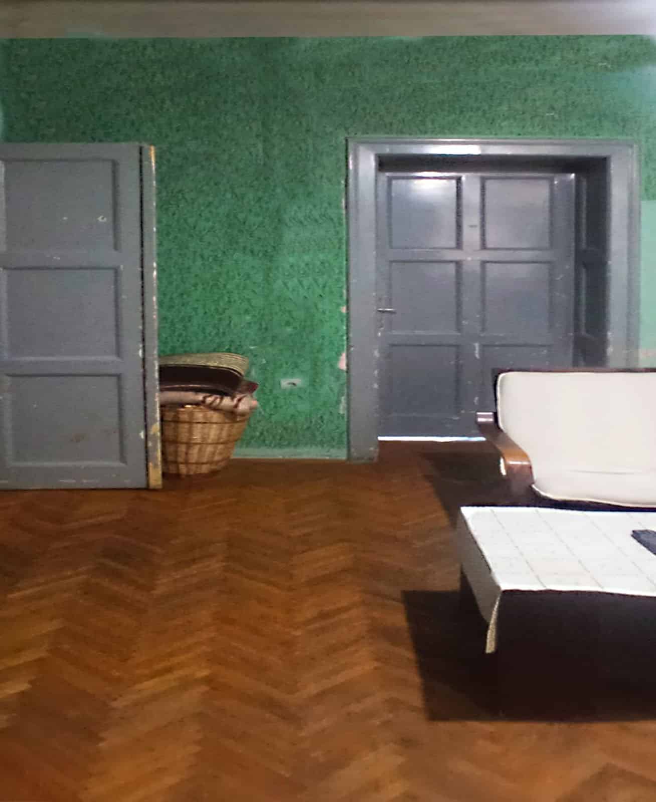 Nalazi se u predratnoj zgradi s malim brojem stanova, na drugom spratu. Iznad stana nalazi se tavanski prostor.