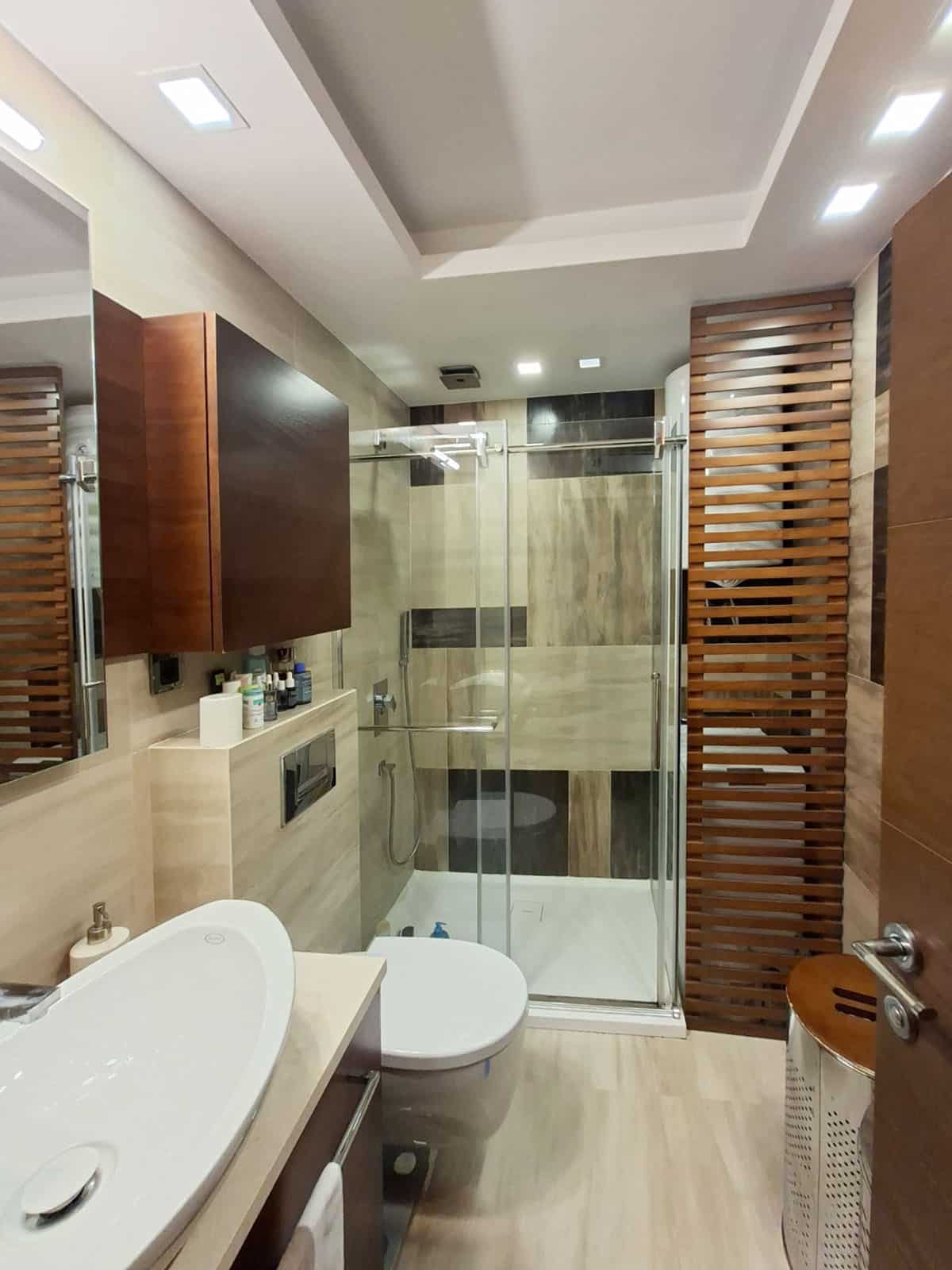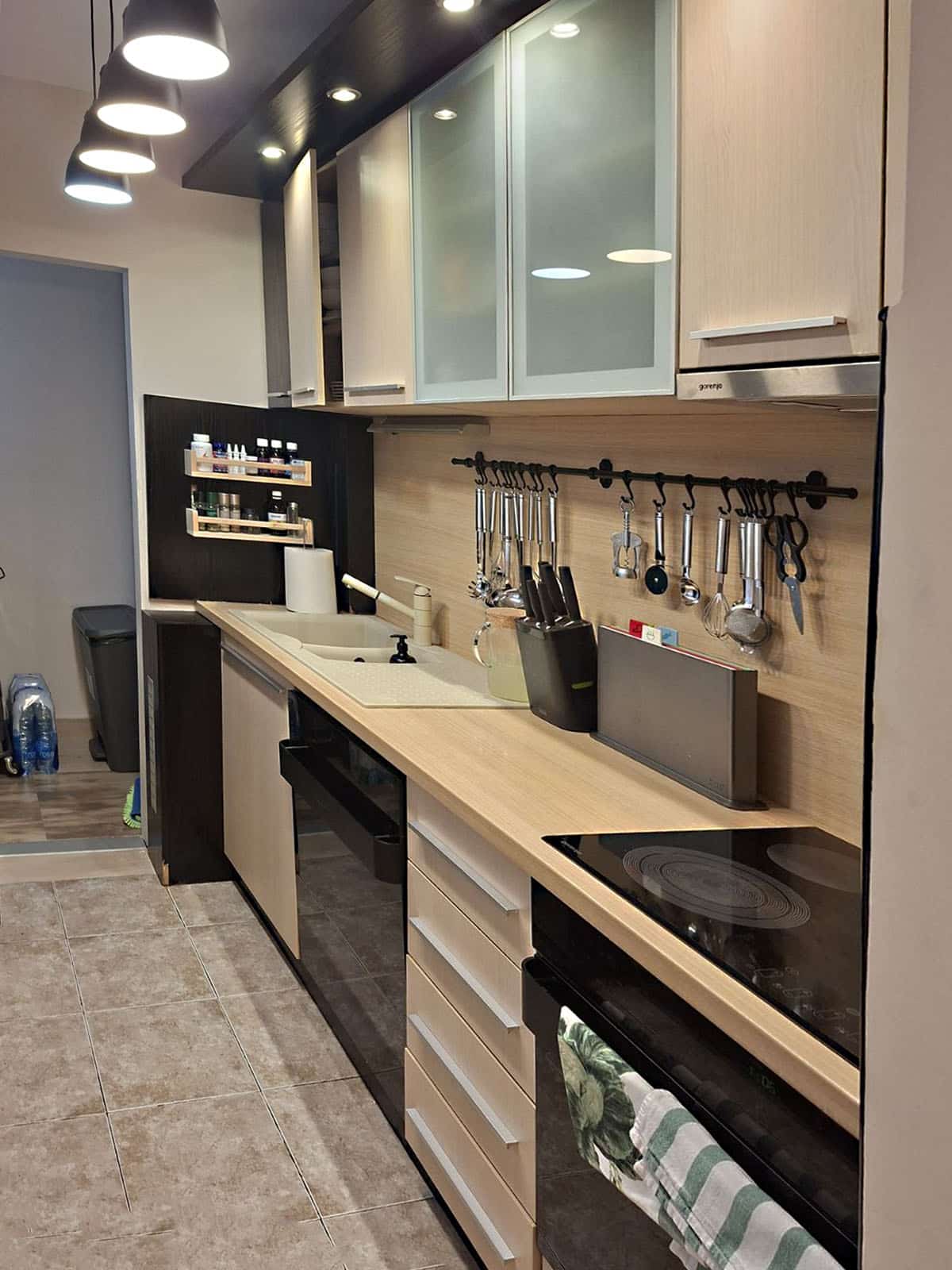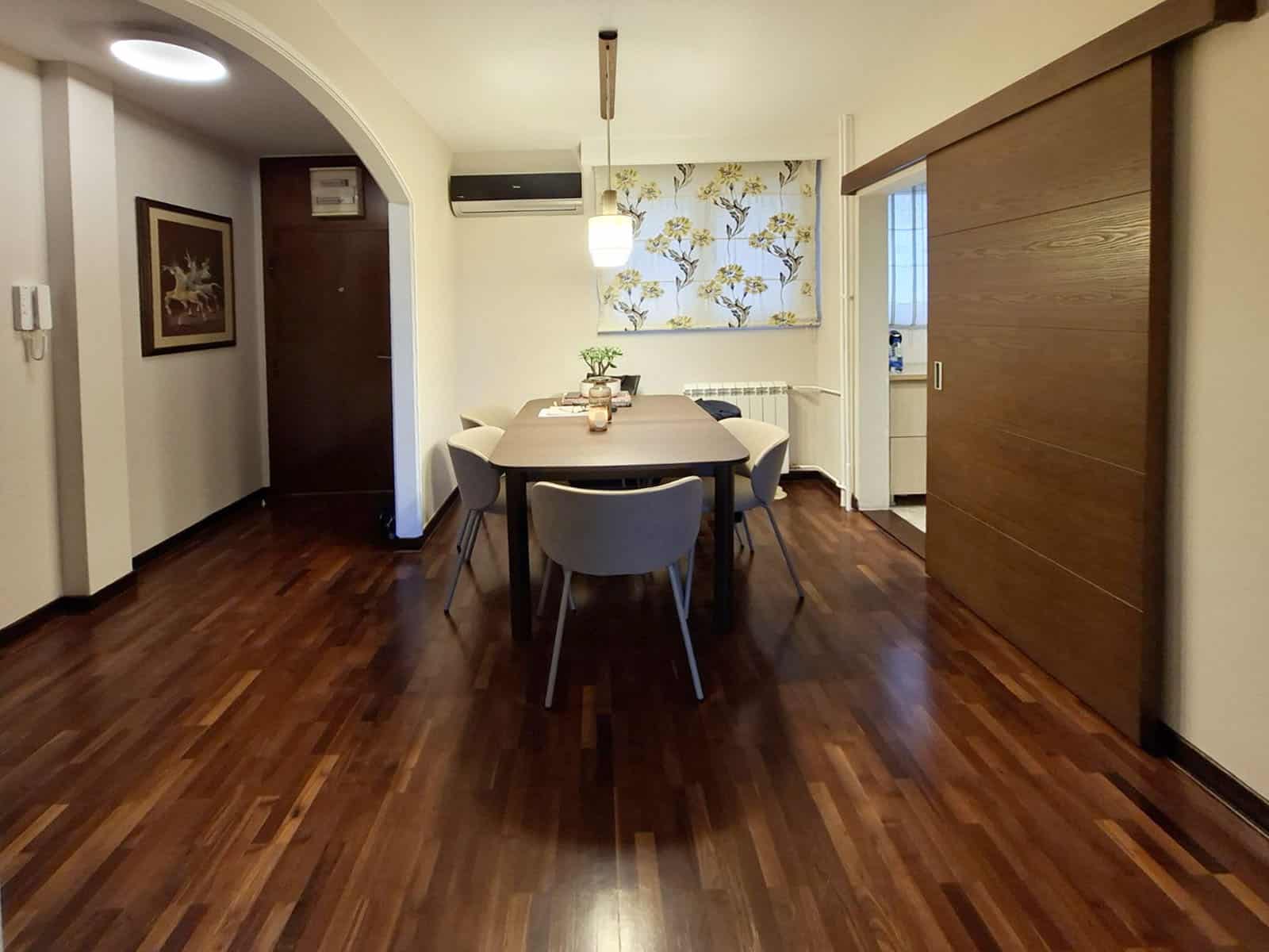 U stanu ostaje kuhinja i garderobni ormari. Stan se sastoji od ulaznog hodnika, trpezarije, kuhinje sa ostavom, dnevne sobe, spavaće, kupatila i terase.