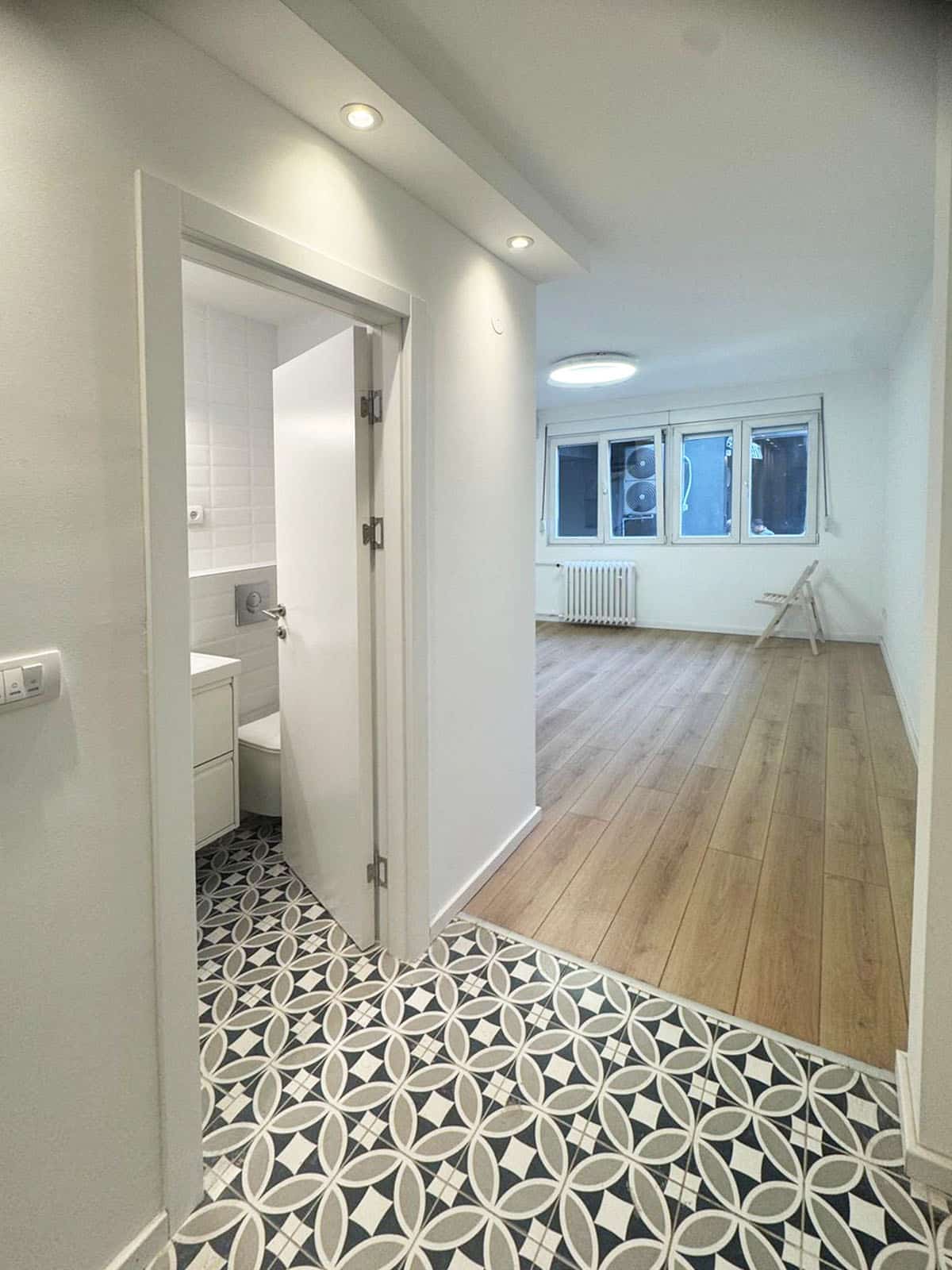 Stan je površine 34m2, nalazi se na visokom prizemlju, renoviran, atraktivanog koncepta.